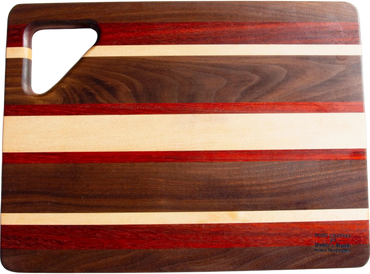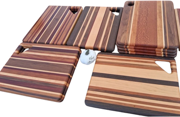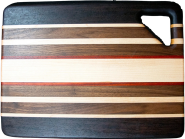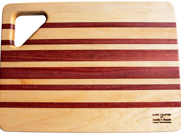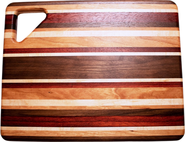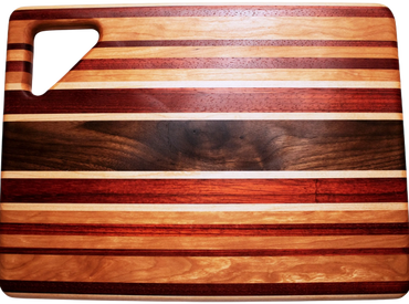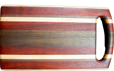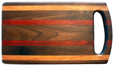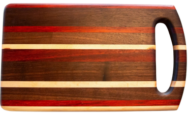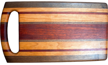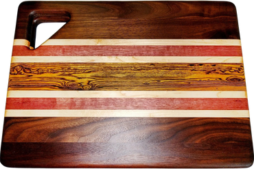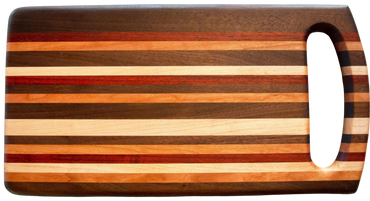 Each one of these versatile cutting boards is carefully hand crafted from gorgeous exotic and domestic hardwood. Your board can be used as a serving tray, bread board, cutting board, or any other purpose you can think of. In addition to being functional, they can be beautifully displayed in your kitchen.
